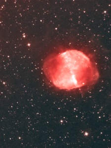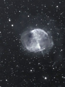 Hallo zusammen, nach langer Pause mal wieder ein Bild von uns.Diesmal musste M27 dafür herhalten.Mit nur drei Aufnahmen a 600 Sekunden am Vixen R200SS,mit Baader Ha 7Na an der kleinen Atik S/W. Gestackt in Fitsworks, bearbeitet in PS CS2. Wie immer, alles auf EQ6! Mit ein bisschen Glück können wir auch bald noch alles in Farbe aufnehmen.